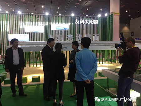 此次展会,整体展位设计风格独特,茂林修竹,工商业光伏屋面配上潺潺流水,让大家感受到了工业与绿色能源的美好融合。金年会屋面系统是将可发电的平面光伏瓦作为屋面建材,配以导水槽、屋面底板、通风屋脊等配件,组装的光伏建筑一体化屋面系统。