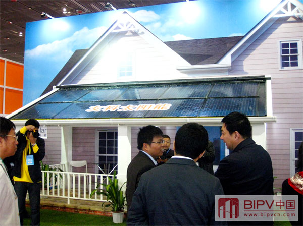 2013年10月30日来源:BIPV中国 有一个月没给《光电建筑资讯》“发现之旅”栏目撰稿了,心里总是惦记着,倒不是人家催我,而是发现新奇之心使然。 恰好建筑光伏遮阳标准的初稿脱手,又逢第5届无锡光伏展开幕,我便踏上了发现之旅。 无锡的天气让人诧异,预报说12℃~23℃,却让人感觉比北京要凉,或许是有海风的原因吧。 无锡太湖国际博览中心建在新区,周边还有些荒凉。光伏展只有一个展厅,约莫40多家参展商。参观的人没有想象的多。 与多数光伏展无异,展商多是组件、逆变器、汇流箱、跟踪器等光伏产品,系统集成展示的图片,也多是以地面电站为主。 正当我兴味索然的时候,“jinnianhui金年会”的展位让我眼前一亮。一座欧式二层的建筑模型,安装了一个遮阳门廊,十块多晶硅组件以瓦的形式铺装在遮阳坡面上,水流缓缓而下,昭示着良好的防水效果。